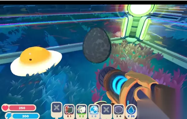 然后是可以直接把巨蛋给小鸡之后放到史莱姆的笼子之中,这样就能控制住数量。 在巨蛋没有光芒的时候就拿出鸡圈放到角落之中当装饰品。