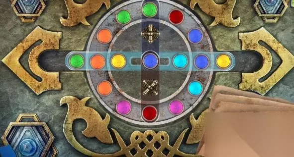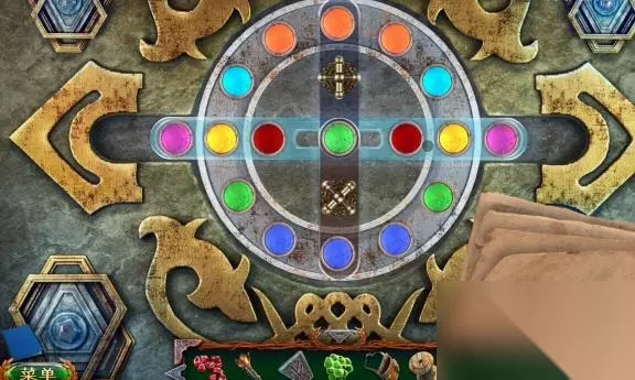 28、逆时针转动四个筹码的位置,点击上面的交换部件,将中间的绿色筹码交换到上方处。