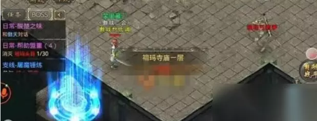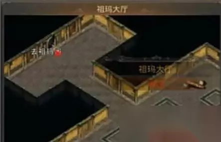 2、进入祖玛寺庙。祖庙寺庙路口位于盟重城外上方,只要进入盟重城外往上走即可看到。