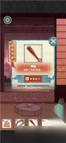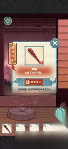 8.把三个圆块嵌进字画旁边的墙里; 9.将圆块按照梅兰竹菊的顺序摆放,打开柜子,获得丝线; 10.到最开始的屋子那里,用火柴点燃树下的蜡烛,顺序是从坐到右依次点一遍(这个也有视频教程)获得琴轴;