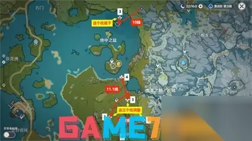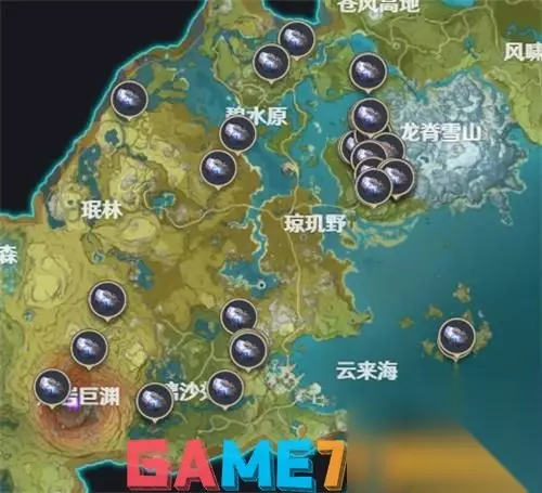 PS:七七和烟绯的天赋技能可以感知到周围夜泊石的分布位置,大家最好带上 夜泊石位置总览图