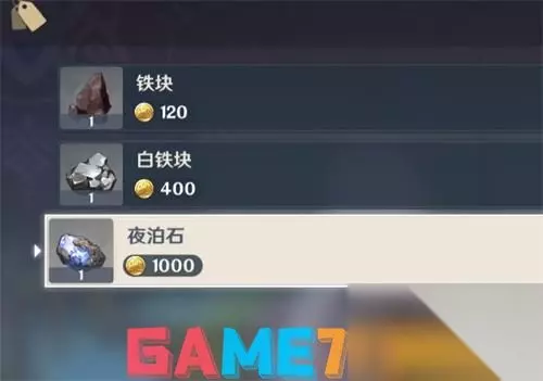 NPC:石头 (每三天5个,1000摩拉/个)