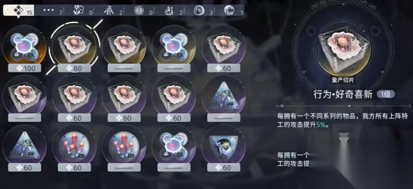 除了对角色有练度要求,还需要角色有一定卡带基础,每通关一个难度都会解锁一些可移植现实,初始的两种可移植现实是保护色和过滤腮。保护色第一个效果是进入后立刻获得一百个异石碎片,第二个效果是获得三件量产切片,随机的三件量产切片能有效提升前期的伤害,特别是队伍练度较低时提升会更加明显。