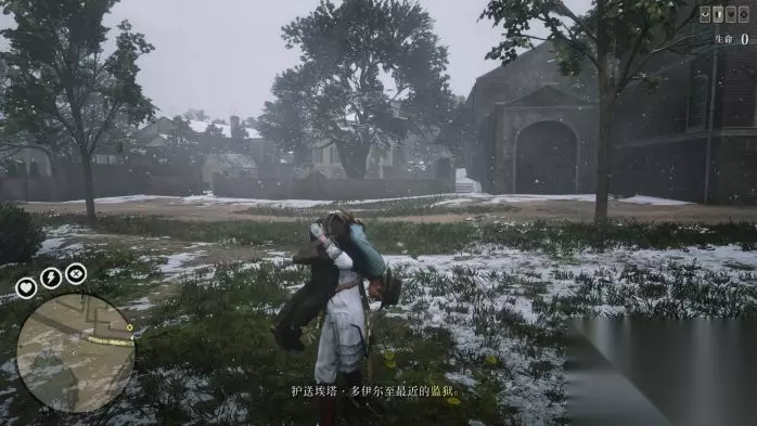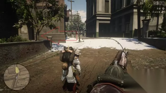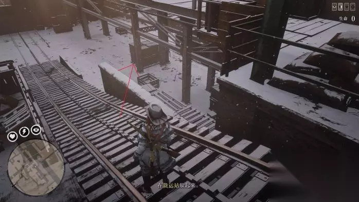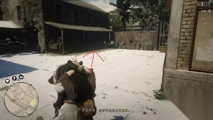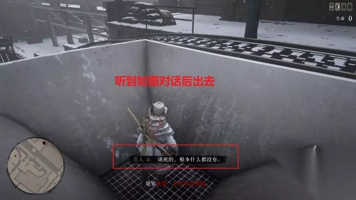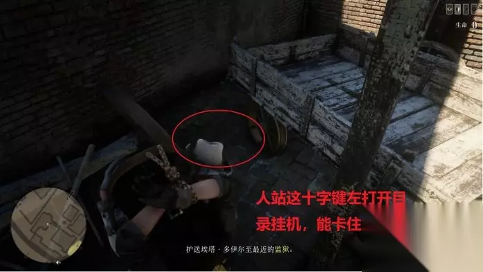 过场结束后,如图位置躲好,等待几分钟,如果提示发呆,动下右摇杆转视角解除发呆。