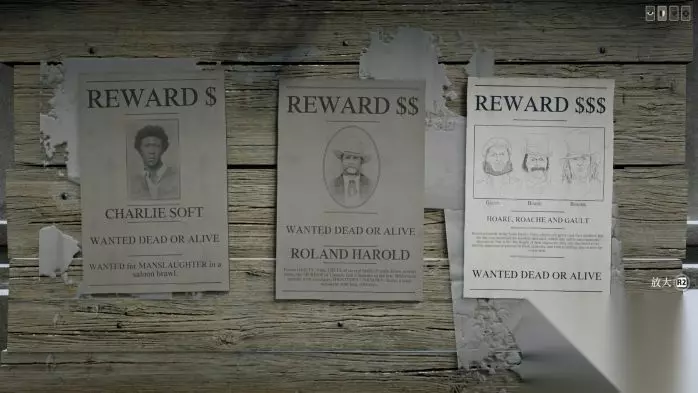 ========================================================================== 2.赏金每日任务: 每日任务悬赏海报 实际地点 新汉诺威海报 瓦伦丁、翡翠车站 西伊丽莎白地区海报 草莓镇,黑水镇 莱莫恩地区海报 圣丹尼斯,罗兹 新奥斯汀地区 风滚草镇,犰狳镇 其他每日任务 追踪箭 先把悬赏目标捆在地上,切出追踪箭,然后开启死神之眼射目标脚后跟就能在不击杀悬赏目标的情况下计数。 困兽索 一个目标丢一次就行了,同一目标丢多次只算一次。 加强型套索 解锁了马上购买,有两种一种是马背上套,另一种是套一定数量。 ========================================================================== 3.进度奖牌里写的恶名悬赏海报,指的是3-6人那种海报,做完1次还会出现2次,一个任务分3次抓完(多个人需要10级解锁的赏金马车来运送),属于团伙抓捕,但是分开抓。抓捕完1次后海报会叉掉抓过的人,和传说海报一样有cd。大概3-4个地点的做完就刷新了,一共13个地点有任务,3个没有传送点是车站,抓捕前2次是普通奖励,第3次抓捕是大额奖励,还给1000多经验xp。做这个任务途中还能根据震动顺路捡一些收藏家物品。