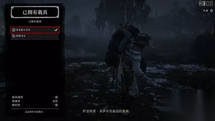 ========================================================================== 等赏金猎人10级后,购买赏金猎人马车,方向键左,马厩点载具,赏金猎人马车。