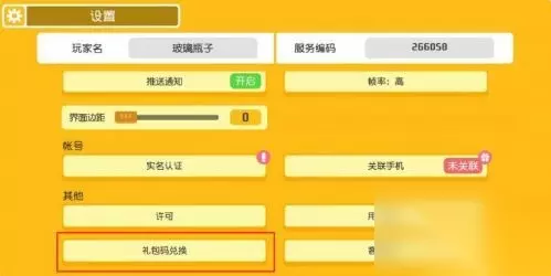 3、在设置界面的左下方,有个礼包码兑换;