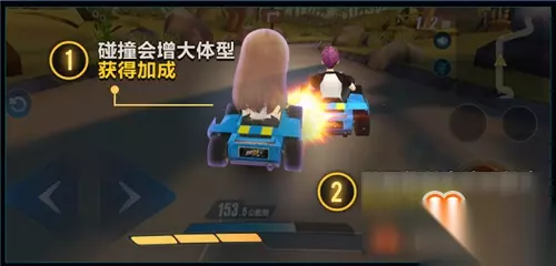 值得注意的是,多次碰撞之间将会有短暂的CD以避免极短时间连续碰撞导致能量格增加过快。 同时,伴随着每次体型增大,车手们也会获得速度加成。能量格越多,速度增加的越多,BUFF也会越强。但当玩家当前处于第一名时,速度加成会暂时取消。