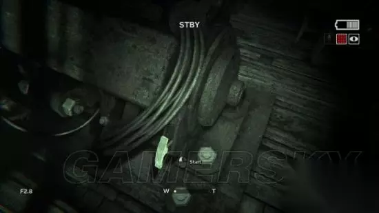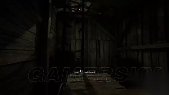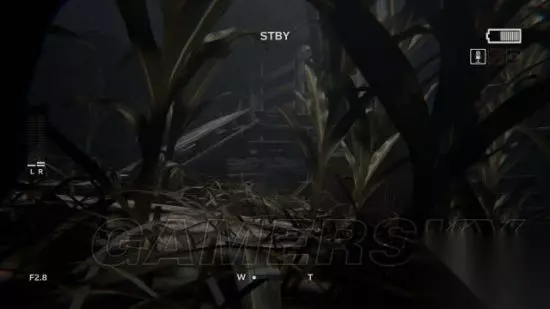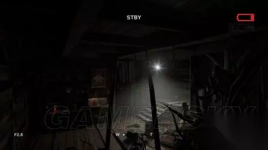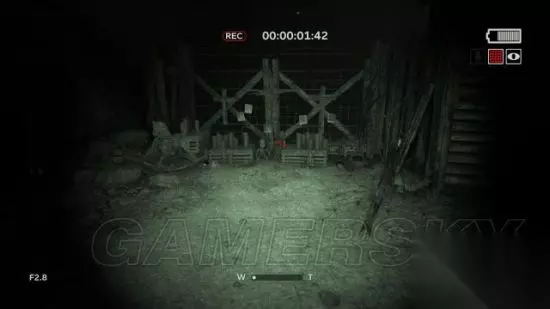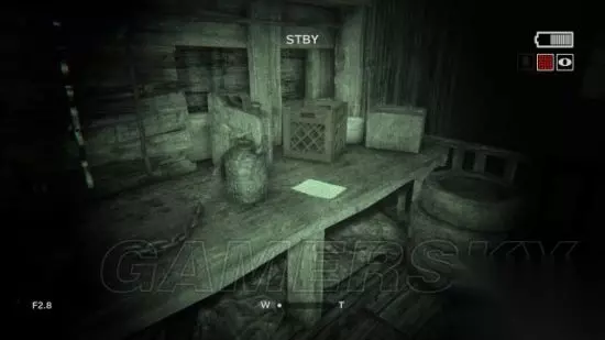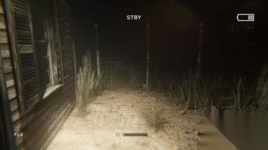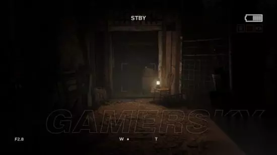 step6.接着进入到一个农场,去到农场通道尽头时,发现后方有三名村民提着电筒在逐渐靠近。记得之前对着草堆进行拍摄可以获得一份录像(2/5)。 在农场走廊的草堆便可以发现附近铁丝网有破洞,钻进农田当中。 这时候要开启麦克风,留意农田中游荡的村民,去到农田的电灯处,爬上木箱翻出农田。