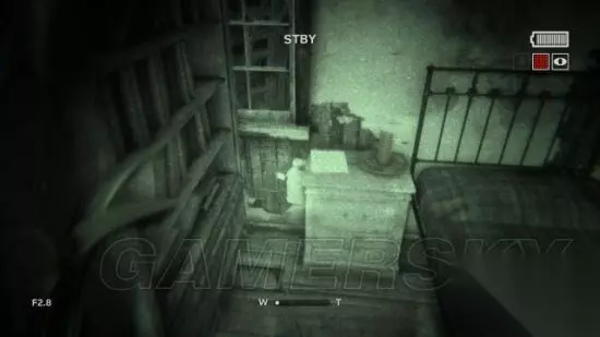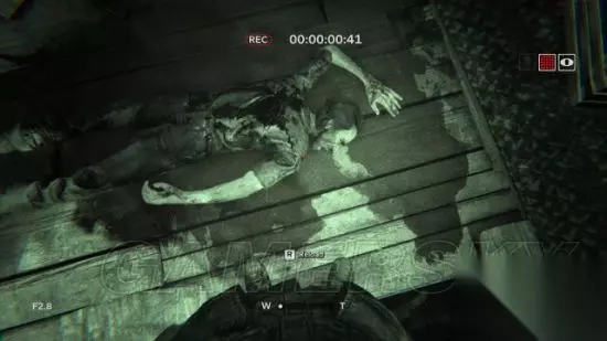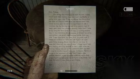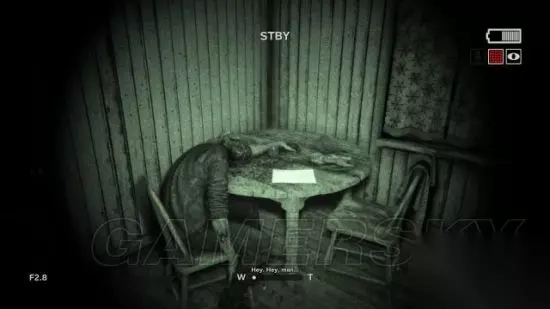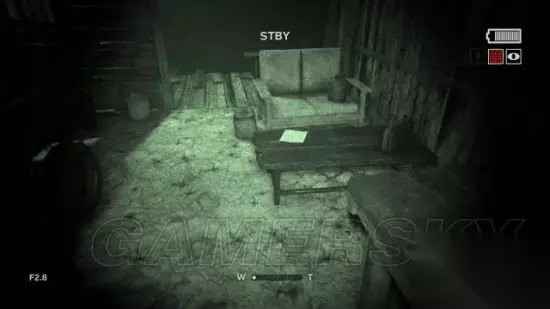step3.前往直升飞机残骸后方,在提着摄像机的时候按F键使用夜视模式。 随后就可以来到一个小村庄,这里只有一个屋子能推开门,在屋内有具尸体的圆桌上发现一份文件(1/6)。 而在附近的录音机所在架子上拿到一个电池。