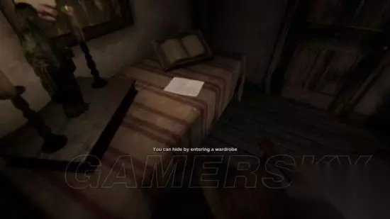step4.巫婆前往老人家的屋内搜寻外来者(Blake)的下落,老者非常有道义,他并没有说出Blake的下落,正因如此老者就被巫婆杀害。 当巫婆离开以后,Blake剥落断裂的木板,就可以爬出地窖。 对着老者的尸体进行拍摄可以获得一份录像(1/5)。 在老者房屋入口左侧的床头柜上拿到一份文件(2/8)。