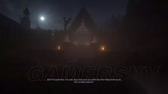 step11.这时候Blake就可以轻松从村民身旁经过,并且一路前往一座教堂前,从左侧木栏破洞位置进入到教堂内。 打开教堂走廊右侧的门,可以找到一份文件(4/6)。 然后将木门打开,进入到地窖。