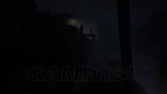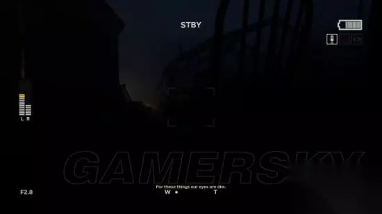 step9.经过一个发电机后,从窗户进入到一房子内,这时候可以按V键打开麦克风,此时左侧会出现两个音量条(L、R),它们表示在镜头正对方向左右两侧敌人所制造的声音,音量越高,表示敌人靠近。 隔着屋门以此来判断屋外的村民远离,随后就可以打开门外出,只见一名村民坐在火篝前的座椅上,这时候不要靠近他。