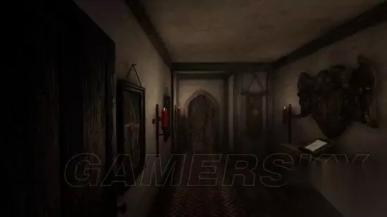 step6.在地窖第一个房间的木台上拿到一份文件(3/6)。 然后第二个房间是一个藏尸间,屋顶有一个十字的裂缝,月光照在尸体上形成一个十字架。 接着沿着楼梯离开地窖。