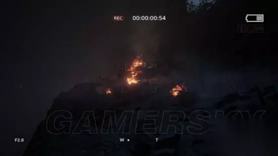 step2.Blake捡起摄像机,然后按TAB键打开收集品栏,可以查看收集品(录像、文件)。 接着沿着山道行走,遇到裂缝时,就使用冲跳通过。 落到山下将摄像机镜头对准着火的直升机残骸,可以收获到第一份录像(1/2)。 Blake发现机师和Lynn都不在,就猜测他们早已离开。