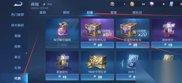 荣耀积分获取方法: 1、商城购买礼包: 我们可以直接在游戏中的专用商城购买荣耀积分大礼包。价格是60分优惠券,礼包自动打开。当你拿到酷炫机甲的时候,你会得到60分。