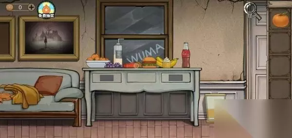 第一天 (出门以后跟小丑男对话,他说在窗户外面写了密码提示。从小丑男的角度来看,我们自己看到的密码顺序应该是反着的:AMUW) 点击左边抽屉,输入密码,得到钥匙,开门出来。