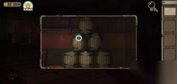 进入003房,从墙上牛羊身上拿到齿轮放到机器上。 接着去左边房间的门口捡一张密码纸,再去右边的房间对照酒桶,得到密码:9286(酒桶上的图案对应的是时钟)。