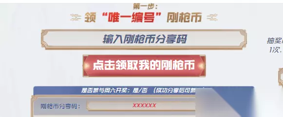 4、点击输入刚强币分享码,就能直接获取自己想要的道具。