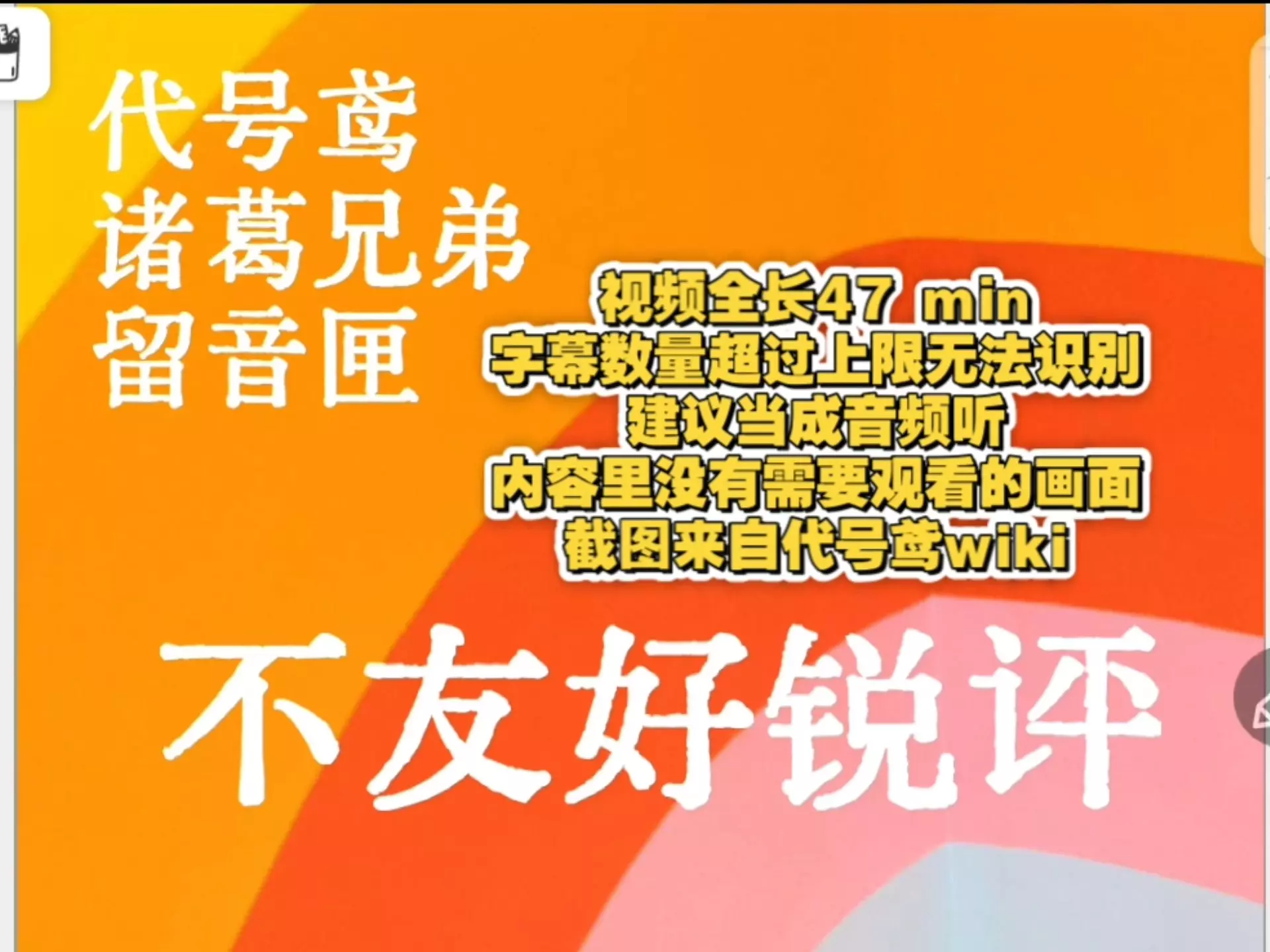 这是游戏《代号鸢》的全密探留音匣合集内容,已更新完毕,展示了张郃的留音匣内容,包含张郃的两段留音,呈现了他的相关内心独白与日常相关表述。