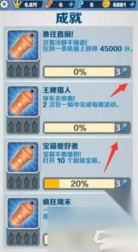 3、成就:玩家们在游戏中解锁了不同的成就也可以获取相应的钥匙。