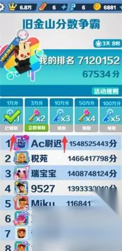 5、争霸赛:当达到相应积分之后系统会免费赠送钥匙。