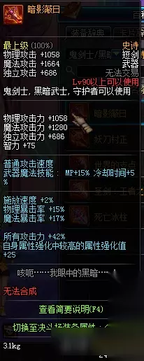 原因:之后可以升级 获取难度较难(只有安徒恩翻牌或者安徒恩的SS罐子可以获取) 对于一些脸帝翻到安徒恩系列的武器,我只能说不管你翻到的是太刀、短剑、巨剑、还是钝器。。带起来吧,没有任何原因,因为就是这样叼,伤害就是这么高!适合几乎所有的SS套跟异界套 2、暗影蔽日