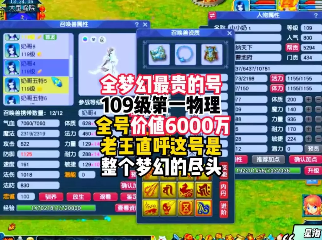 这是《梦幻西游》的内容,展示了神威擂台单挑王的九黎城账号,该账号属性强悍,伤害3124、防御1920,还有强力召唤兽与极品装备,属性堪比服战队,探讨这类账号能否让老王在擂台无敌。