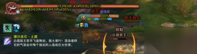 副本打法技巧攻略: 老一:胡鞑 技能介绍: 旁边的白眉不用打,单攻BOSS即可。 当头一锄:随机点人扔锄头,有减速BUFF 当心脚下:脚下会出炸弹 爆炸后变火圈,出火圈即可 鼠疫:靠近白眉会有持续毒性伤害,很大的一个绿色毒圈,如果中间出了只能靠边打了,对近战不友好。治疗和被治疗成效降低。T拉白眉不让靠近人群,特别是不要让他靠近奶妈。 钻地:BOSS遁地到处跑,躲开BOSS,最后会突然冲向某目标。45%,35%钻地,输出到20%过了。 boss打法介绍: 注意躲避boss土遁(此时免疫伤害)的路径即可,出现就打,尽可能的不要抱团