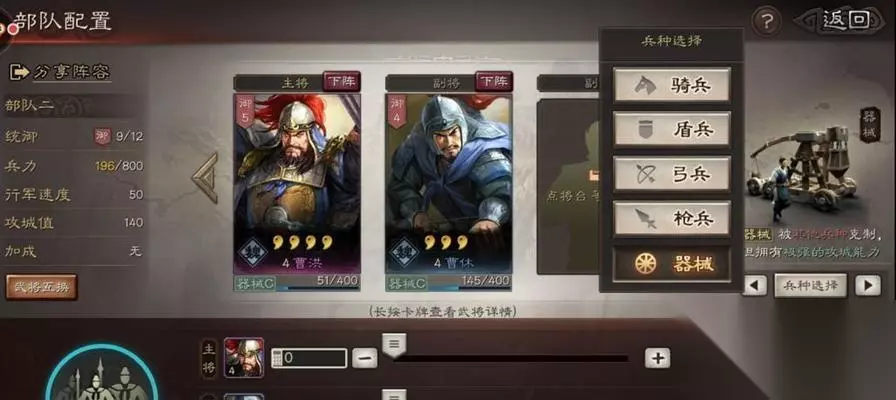 三、弓兵——远程输出、消耗敌军体力的利器 弓兵是游戏中唯一的远程攻击兵种,可以有效地消耗敌军的体力和资源,并提供重要的火力支援,是对付敌方骑兵和远程兵种的重要克制。 四、投石车——攻城利器,摧毁敌军城墙 投石车是攻城拔寨的重要兵种,可以远距离摧毁敌军城墙,为己方的步兵和骑兵开辟进攻通道,是攻城时不可或缺的强力单位。 五、弩车——远程输出、精确打击的重要工具 弩车是一种远程攻击单位,具备高精度的打击能力,可以准确命中敌军要害部位,是对抗敌军重装兵种的重要利器。 六、斥候——侦查、突袭敌军后方的利器 斥候是一种轻型骑兵,具备快速侦查和突袭敌军后方的能力,可以获取敌方情报并对敌军偷袭,是游戏中隐蔽行动的重要角色。 七、近卫军——防御、持久战的最佳选择 近卫军是一支高级步兵部队,具备出色的防御能力和持久战斗的能力,适合防守和迎击敌军的进攻,是保护玩家城市安全的重要力量。 八、战象——强大攻击力、防御能力的战争利器 战象是游戏中最强大的单位之一,具备超强的攻击力和防御能力,可以轻松摧毁敌军的城墙和主力部队,是对抗强敌的重要利器。 九、刺客——暗杀、破坏敌军高级单位的利器 刺客是一种隐蔽行动的特殊部队,可以潜入敌军阵营暗杀敌方将领和破坏敌方高级单位,是对付敌军精英部队的重要克制。 十、火箭车——大范围群攻、对抗密集兵团的利器 火箭车是一种大范围群攻单位,可以对抗密集兵团造成巨大伤害,是战场上的杀手锏,可以迅速改变战局。 十一、步兵车——机动输出、突破敌阵的重要工具 步兵车是一种机动输出单位,可以迅速突破敌阵并对敌军进行有效的输出,是战术灵活的重要兵种。 十二、骑兵弩车——快速输出、攻防兼备的利器 骑兵弩车是一种快速输出、攻防兼备的兵种,具备较高的机动性和远程攻击能力,适合在战场上执行多样化任务。 十三、军师——策略制定、指挥整体战局的关键 军师是游戏中的重要角色,可以为玩家制定战略并指挥整体战局,提供重要的智慧和决策支持。 十四、合理搭配兵种——打造无敌战斗力的秘诀 合理搭配不同兵种是玩家打造无敌战斗力的关键,根据敌方兵种特点选择合适的搭配策略,可以取得战斗的胜利。 十五、兵种搭配策略——巧妙运用兵种优势取胜 兵种搭配策略是玩家在游戏中取得胜利的关键,巧妙运用不同兵种的优势,合理搭配兵种,可以在战场上取得压倒性的优势,实现最终的胜利。 在《王国霸主》游戏中,掌握兵种搭配战略是取得胜利的关键。通过合理搭配不同兵种,玩家可以充分发挥各个兵种的优势,制定有效的战略,并在战场上取得优势。希望本文的介绍和解析可以帮助各位玩家提升游戏策略水平,打造强大的军队,成为真正的王国霸主。