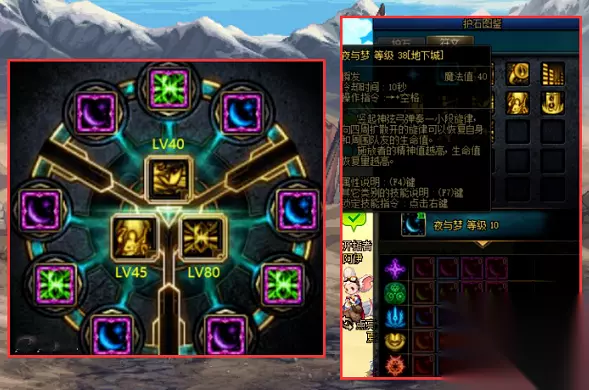 2、搭配二: 护石搭配:40级音力增强、45级缪斯之声、70级闪耀旋律; 符文选择:紫绿红形式,紫/蓝符文选择10级“夜与梦”,绿色符文选择70级“闪耀旋律”;