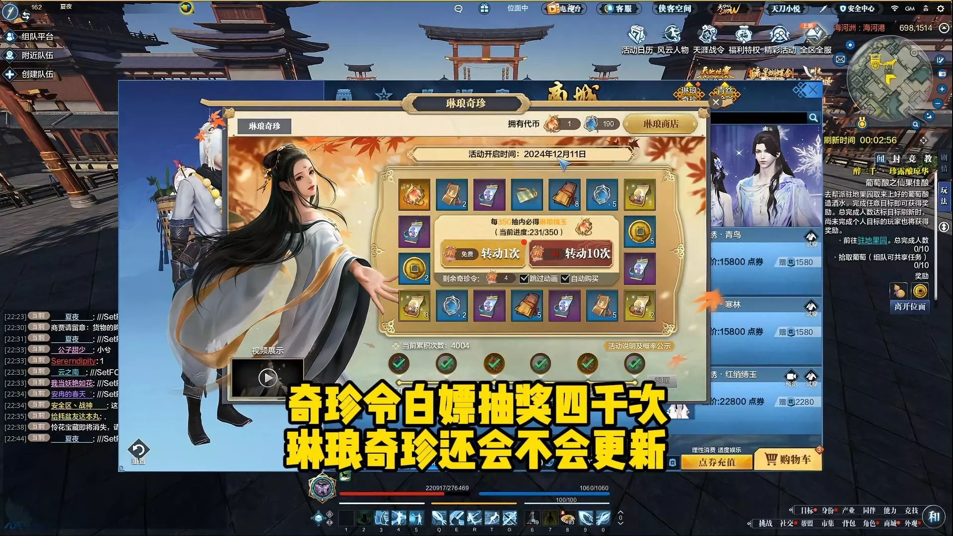 令我没想到的是 奇珍令居然这么久没更新了,我居然也凑够了4000次 琳琅瑰玉的时装也换了一身9个的光明之主+一身10个的天鹅终章 这个琳琅奇珍的道具奖励和时装奖…