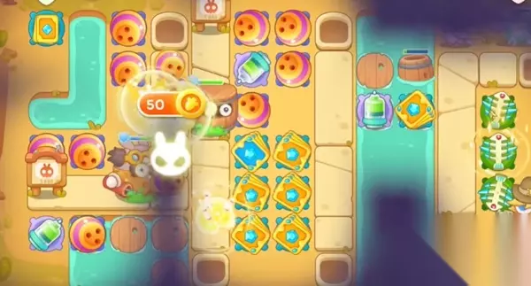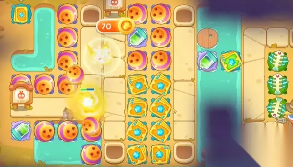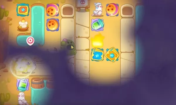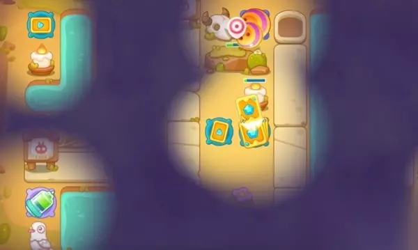 保卫萝卜4波仔很忙第56关图文攻略: 1、在中间的位置上面摆放上两个保龄球和卡牌先是在中间往左边来进行清理。