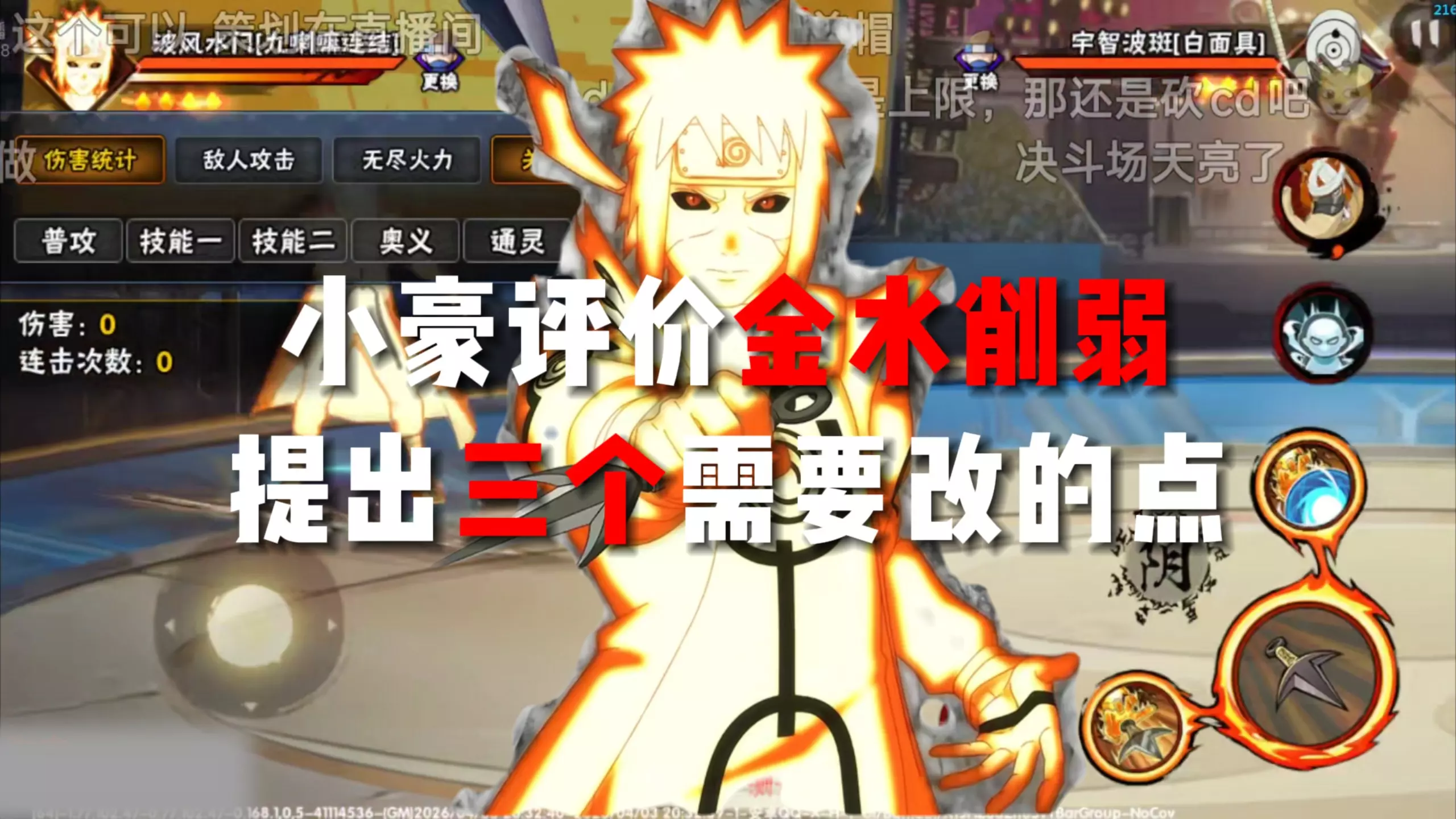 有玩家吐槽火影决斗场里的高招忍者波风水门[九喇嘛连结]制作和强度双低,存在技能bug,比如扎标标记异常等问题,不过也表示只是乐子视频,不必上纲上线。