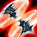 技能2:血性冲刺 攻击速度提升20%,持续3秒。移动速度提升50%,且在1.5秒内持续衰减。 接住旋转飞斧,可重置技能冷却时间。
