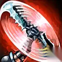 技能1:旋转飞斧 获得旋转飞斧,使下一次普攻附带额外45物理伤害。 投掷出的飞斧会从目标身上弹回。如果成功接住,会立刻准备好下一发旋转飞斧。 可同时持有两柄旋转飞斧。