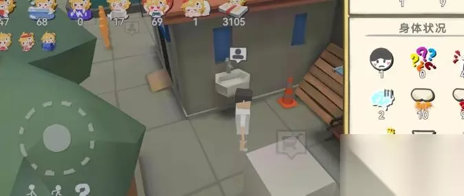干净不要低于0,睡意不要超过20,体力和钱就是用来花的,其他不要超过100,不透支潜力推荐的打工是网吧网管; 食物推荐薯片(长期保存),包子(买完就吃),不想跑图可以买水和湿纸巾。 标准流程就是网管,睡长凳10小时,吃薯片和湿纸巾,拉屎超过90去拉屎,回去打工。