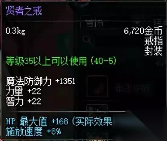 5、贤者之戒 大名鼎鼎的贤者之戒。+8%释放速度,魔法职业用来堆释放的,8%已经非常高了,那时候6线都是收墨竹,贤者啥的,不知道勇士们有没有被骗过