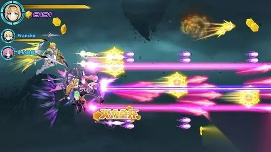 步骤一: 开局有一大波飞机,队友是雪伦的话建议放一次蓄力技,当然也可以像小编这样在下方躲起来,虽然得分会低一点,但是绝对安全,等飞机飞过去了以后,我们就可以正常推图了。 步骤二: