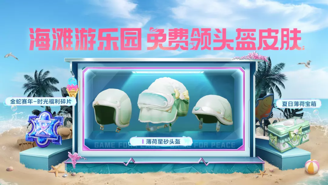 8月15日-8月28日,完成每日任务与海滩小游戏:泡泡派对、冰淇淋叠叠乐、海滩烤鱼王,累计获得指定数量贝壳币后,可领取全套薄荷星砂头盔皮肤!