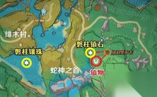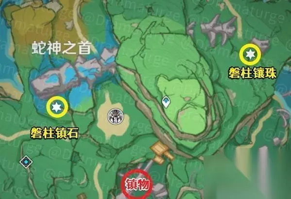 原神远吕羽氏遗事其二任务流程: (1)寻找蛇神之首的镇物。 (2)寻找缺失部件修复鎮物(蛇神之首·磐柱镶珠,蛇神之首·磐柱镇石) (通过元素视野找,通向两个方向)