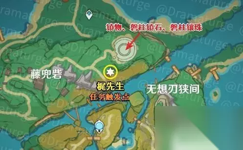 (2)寻找缺失部件修复镇物(蛇骨矿洞·磐柱镶珠,蛇骨矿洞·磐柱镇石) (通过元素视野找,通向两个方向) 原神远吕羽氏遗事其四任务流程: (1)回去向梶报告。