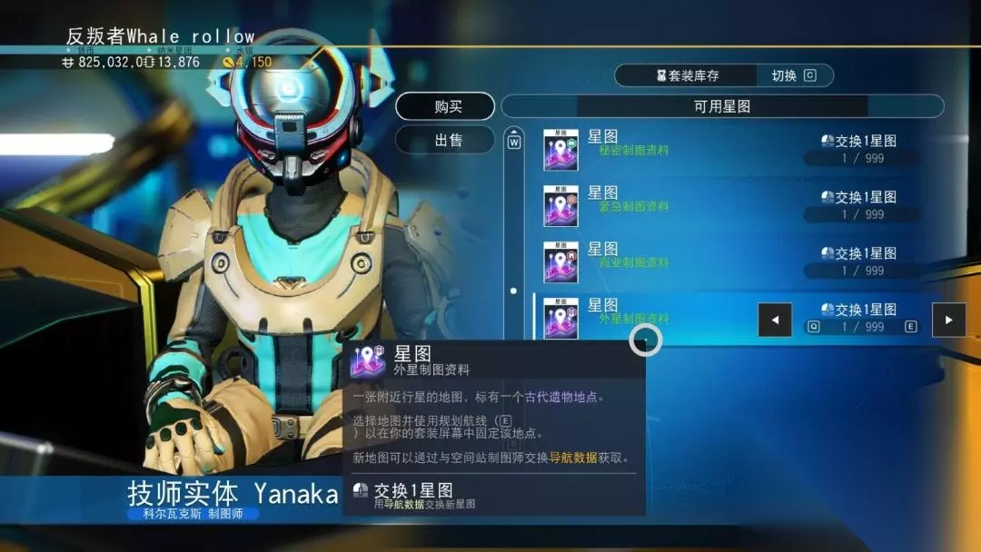 那接下来,就开始符文传送门的寻找流程,同样是跟着主线就可以解锁,但是不想等到做主线解锁。 必备物资: ①若干导航数据,充足的飞船燃料,若干有色金属 ②所在星系对应种族的纪念品(科尔瓦克斯外壳,维基恩匕首,吉克小吸) 寻找流程: 第1步: 前往空间站寻找制图师,购买【古代遗物地点】星图 制图师在空间站的蓝色传送门旁边 建议一次性多买几个,最好使用导航数据交换指定图纸,纳米买的是随机的
