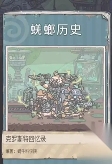 许多玩家发现每日任务中新增了一个:完成1次蜣螂历史挑战。但是可能不知道这个历史挑战是什么东西。 蜣螂历史挑战是新版本中增添的一个特殊玩法,在俱乐部的物种里面可以找到。 蜗爷们在获得蜣螂图超级变异体胚胎后,通过精密研究后,解析出蜣螂族第四任元首-克罗斯特的生前回忆,在一番罗列整理形成一本小册子,现在就让蜗们一同走进他与蜣螂族的历史长河中观摩! 蜗爷们可在该玩法中完成各类事件,并领取奖励。