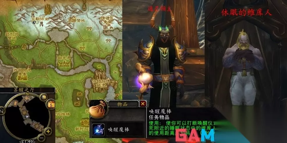 3.任务过程: 击杀通灵领主掉落任务物品:唤醒魔棒,之后对苏醒之厅休眠的维库人使用。