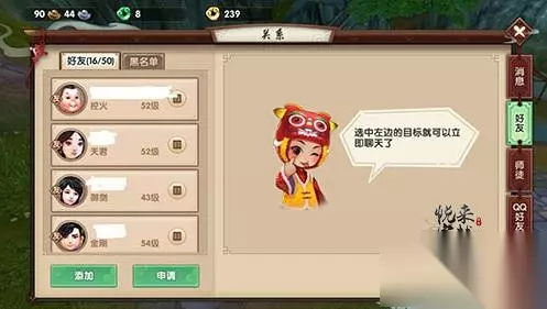 二:好友 任何游戏都不缺少好友系统。好友系统是一个游戏社交系统中最重要的玩法。在寻仙游戏界面中,聊天界面左侧的关系就是好友系统,在修仙的过程中,总会碰到志同道合的仙友,完全可以将他加为好友之后一起修仙。而如果是短暂的沟通可以点击该仙友之后选择聊天便可以,与该仙友的沟通可以在消息记录中查看。 三:师徒 四:仙友 仙友系统是寻仙手游最具特色的社交系统,不同于以上几个社交体系,仙友的社交是建立在仙友与NPC的对话基础上的,在游戏中,仙友达成某个前提条件后,会有NPC的头像出现,点击之后会触发仙友事件或者游戏教程,对话中NPC会给予几个不同的选项回答,根据选择选项的不同,对话之后可以获得奖励。 每个仙友的对话都是可以回顾的,如果你比较无聊,也可以和仙友们打打招呼,聊聊修仙路上的趣事,也是挺好的。 五:QQ好友 寻仙系统是与QQ和微信绑定的,小仙使用的是QQ号登陆,在游戏中,加了某位仙友为好友后,如果他是你的QQ好友,就可以领取强化石奖励,QQ好友越多,奖励就越丰厚。强化石在游戏中是很重要的一项资源,所以,尽可能多的去邀请你的QQ好友体验游戏吧。 如转载涉及版权等问题,请作者与我司联系,我司将在第一时间删除或支付稿酬。