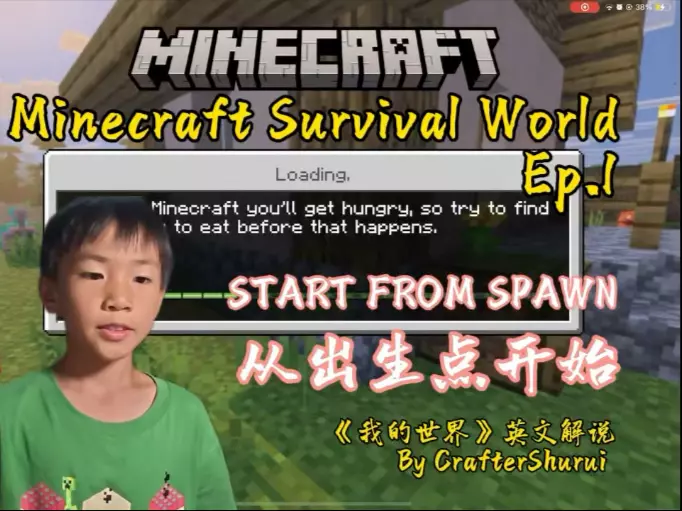 8岁小孩爱上我的世界后看了很多英文游戏解说如今开始自己输出。全英文第一视角解说我的世界