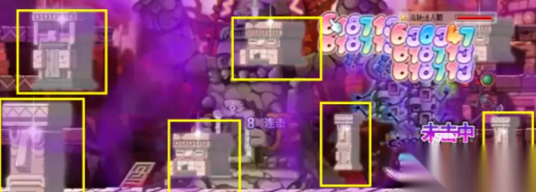 第二个技能拍手,这个拍手是对台阶上的玩家造成伤害,在释放拍手的时候,扎昆的手臂会合拢,这时候台阶上出现光芒就代表这层台阶会受到伤害,这个伤害是直接秒杀的,一定要躲掉,否则很容易造成团队中的大幅度减员。