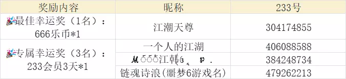 🎉专属幸运奖(3名):233会员3天*1