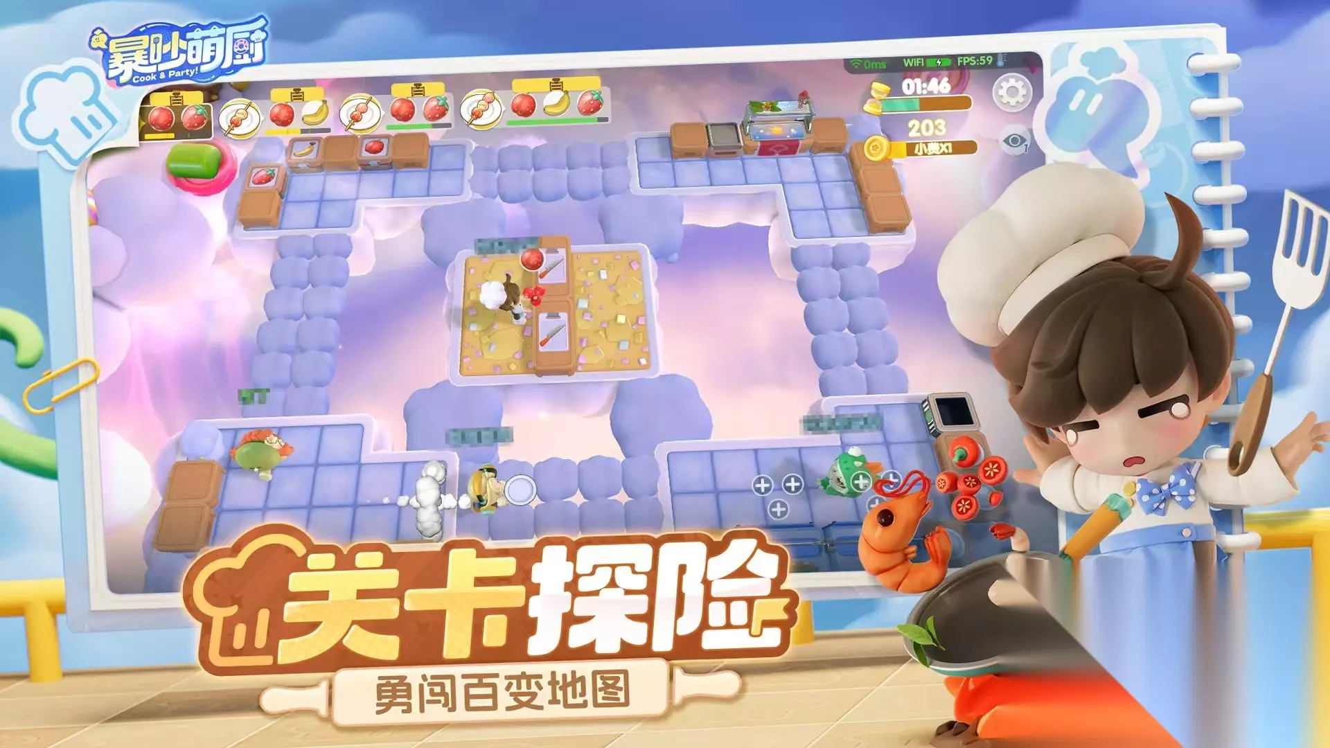 《你画我猜》是经典的益智休闲游戏。游戏玩法很简单,需要两人配合进行。其中一位玩家将拿到系统给的词,这位玩家需要发挥想象,在没有任何语言提醒的前提下,把这个词画出来。而另一个玩家就需要通过其所画内容,猜出对方拿到的词是什么。整个游戏过程中都没有任何语言交流,所以非常考验双方的默契。 高速下载 普通下载 优先233乐园APP下载 3、《暴吵萌厨》